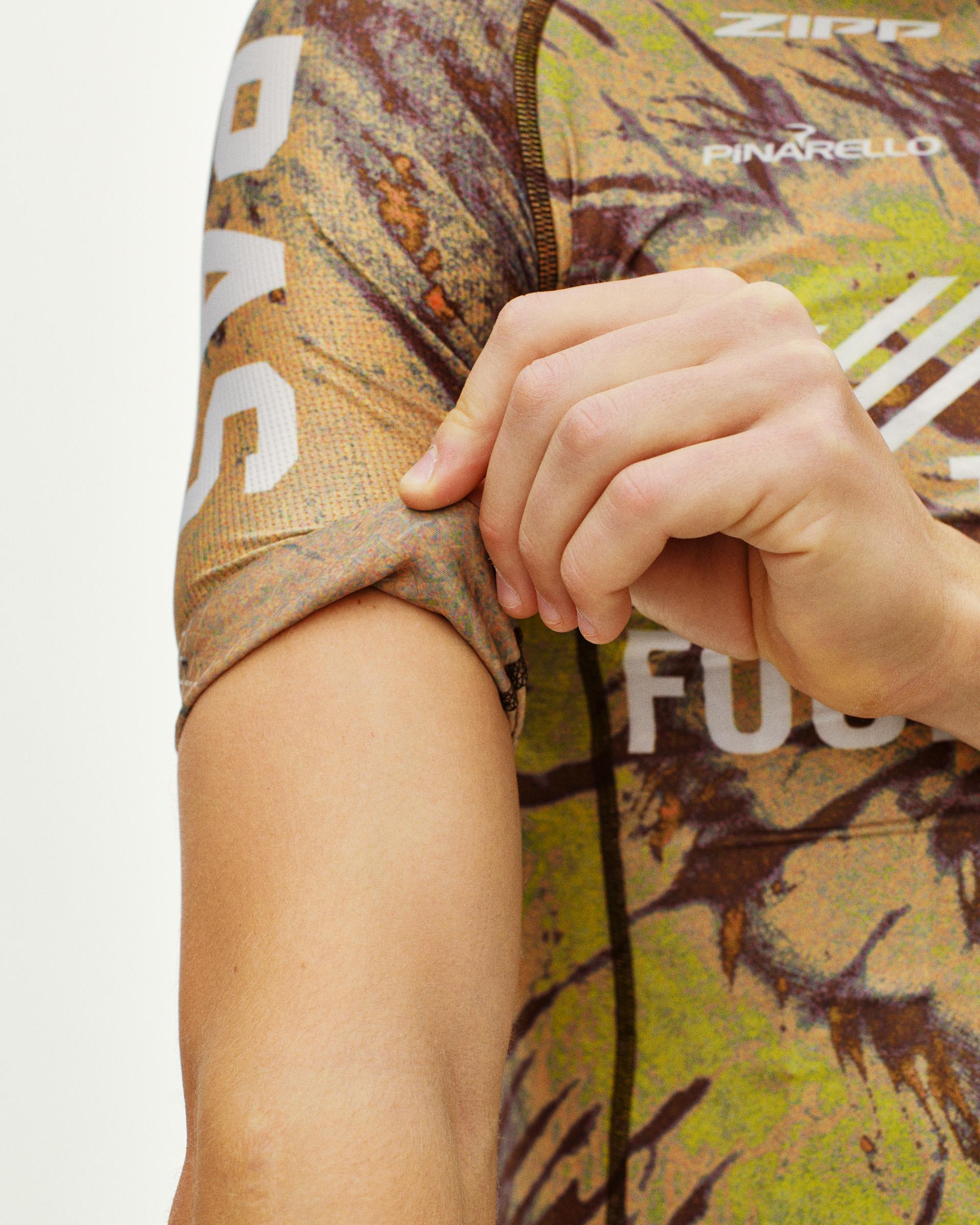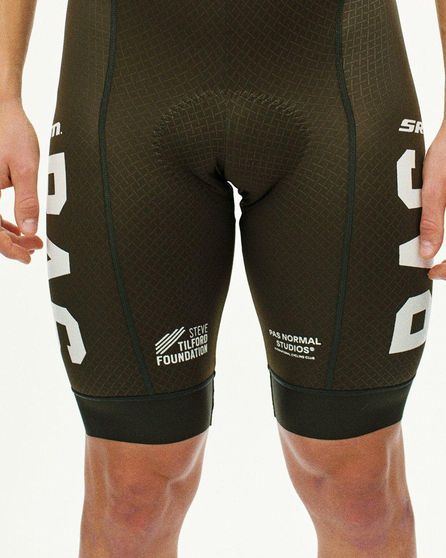 Pas Normal Studios und Enough Cycling - eine streng limitierte Kollektion aus Männer und Frauen Mechanism Bibs und Jersey. Das Design greift das Glitch-Muster und die Haltung des globalen Radsportkollektivs mit Sitz in Italien auf.