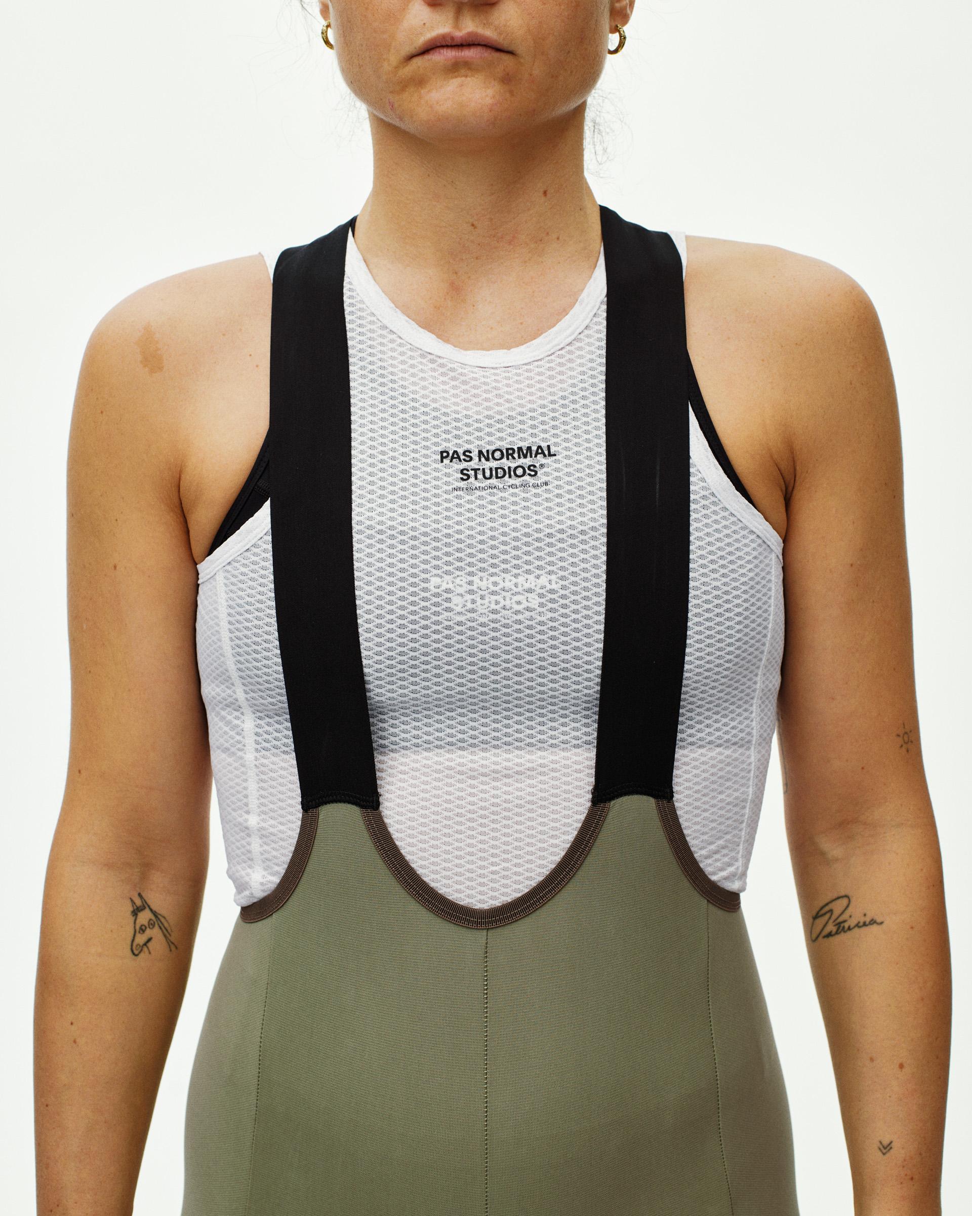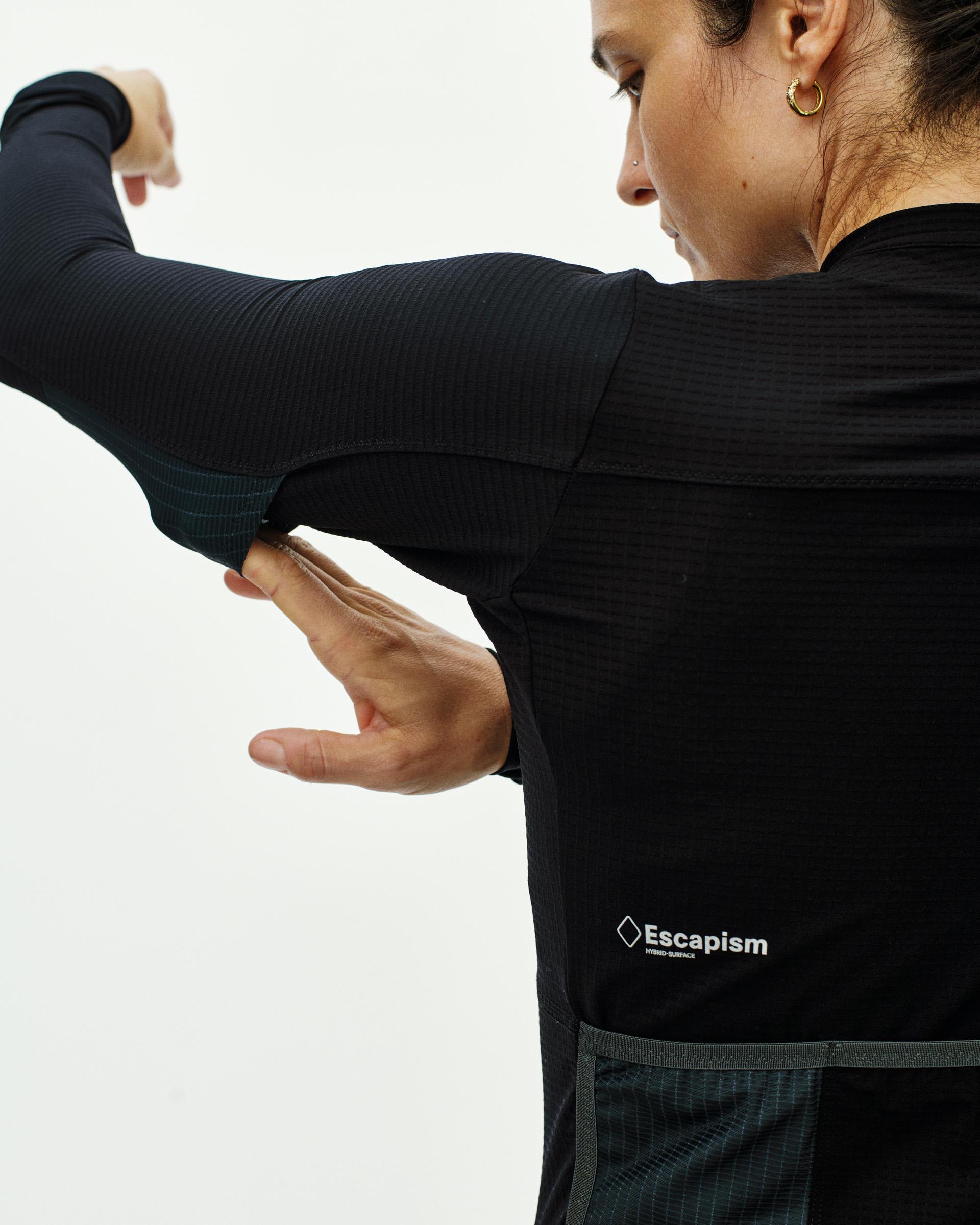The Escapism Bibs have a tight fit with a higher waist than previous Escapism Bibs. An updated bib strap construction and a stable gripper at the hem keep the bibs securely in place.