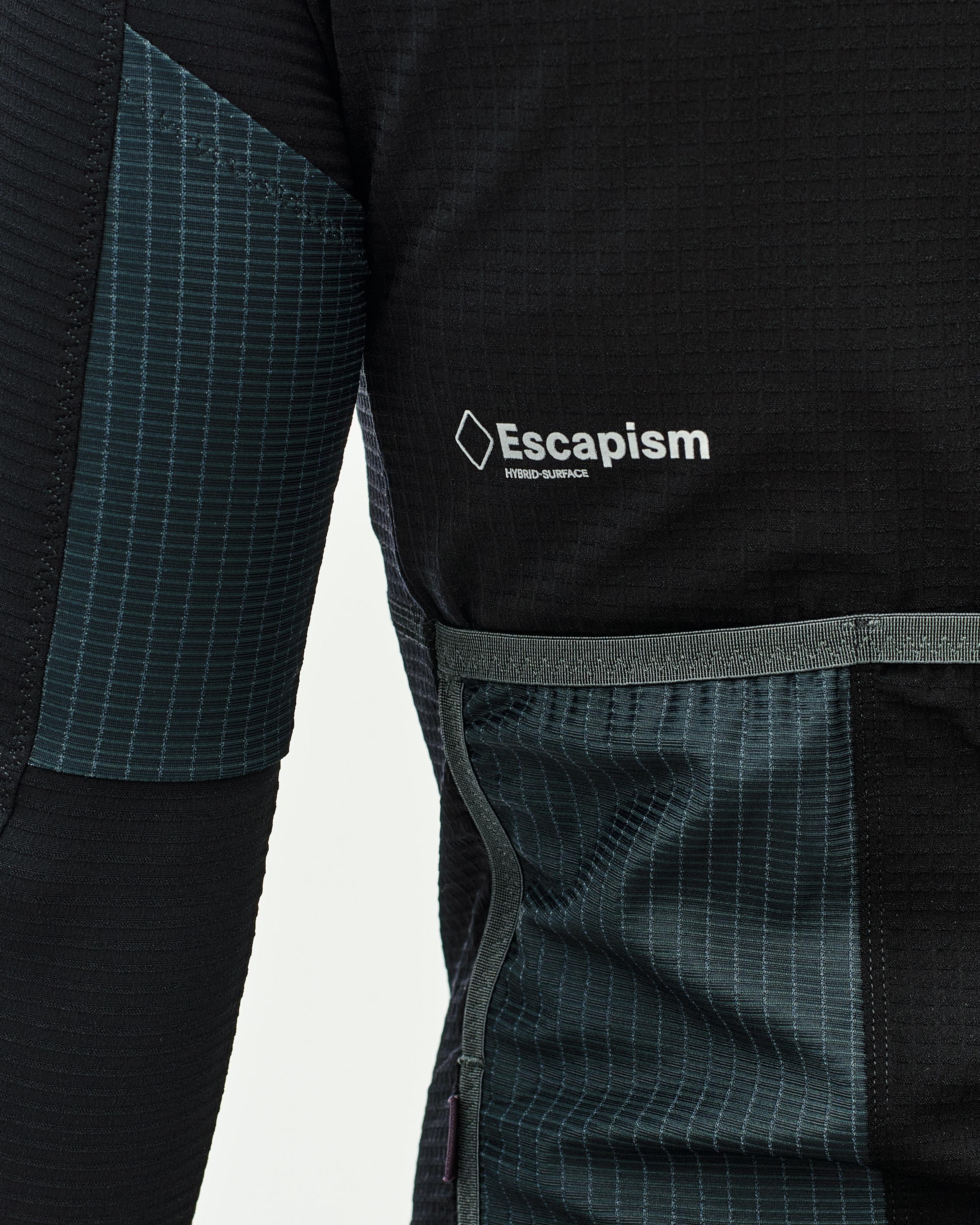 The Escapism Long Sleeve Jersey is designed for fast-paced gravel and hybrid-surface riding in warm conditions. Made from lightweight, structured fabrics with a dry, matte hand feel, it offers high breathability and a rugged look suited to long days off-road. The long sleeves and structured fabric offer an extra level of protection from bushes and branches when riding narrow paths and trails. The jersey features a gravel-specific pocket configuration, including two extra pockets on the back of the arms and above the rear pockets. The externally attached two-way zipper allows for flexible ventilation, while the elastic hem with silicone gripper ensures a secure fit.