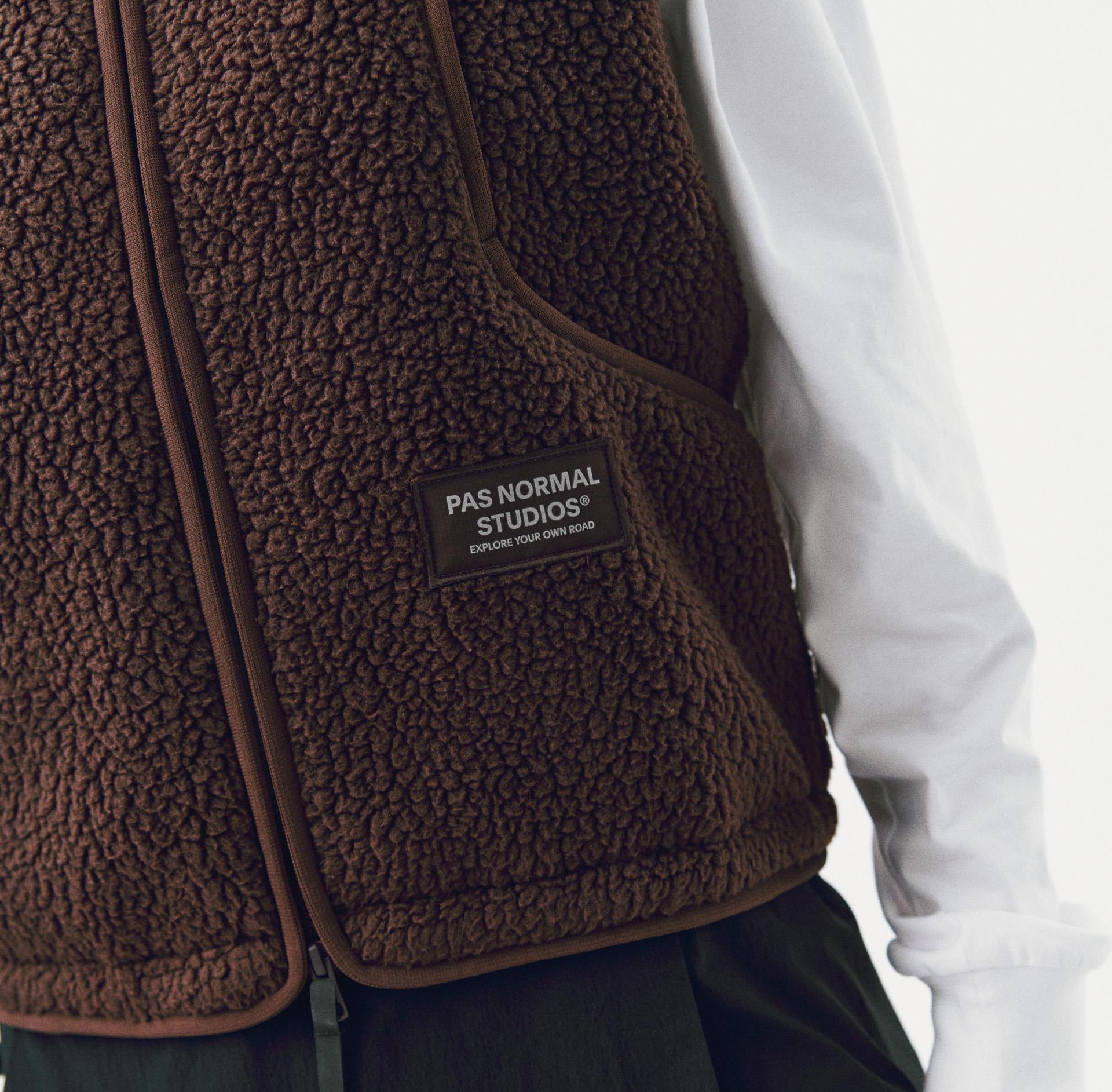 This vest features a relaxed fit with a cropped and slightly shorter length than our other Off-Race fleece vest. For a longer silhouette, we recommend sizing up.