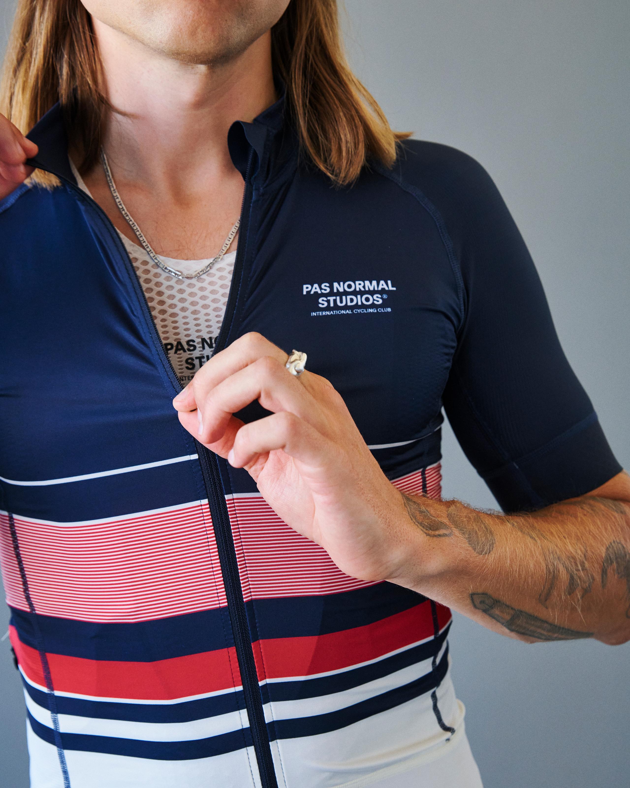 The collaborative effort from JJJJound and Pas Normal Studios explores the intersection of heritage and contemporary cycling culture. Rooted in tradition but reframed for the present day. The collection pays homage to the expressive visual identity of past generations’ kit, while gently nodding to the rural origins and fleeting landscapes that shape the cyclist’s experience on the bike.
