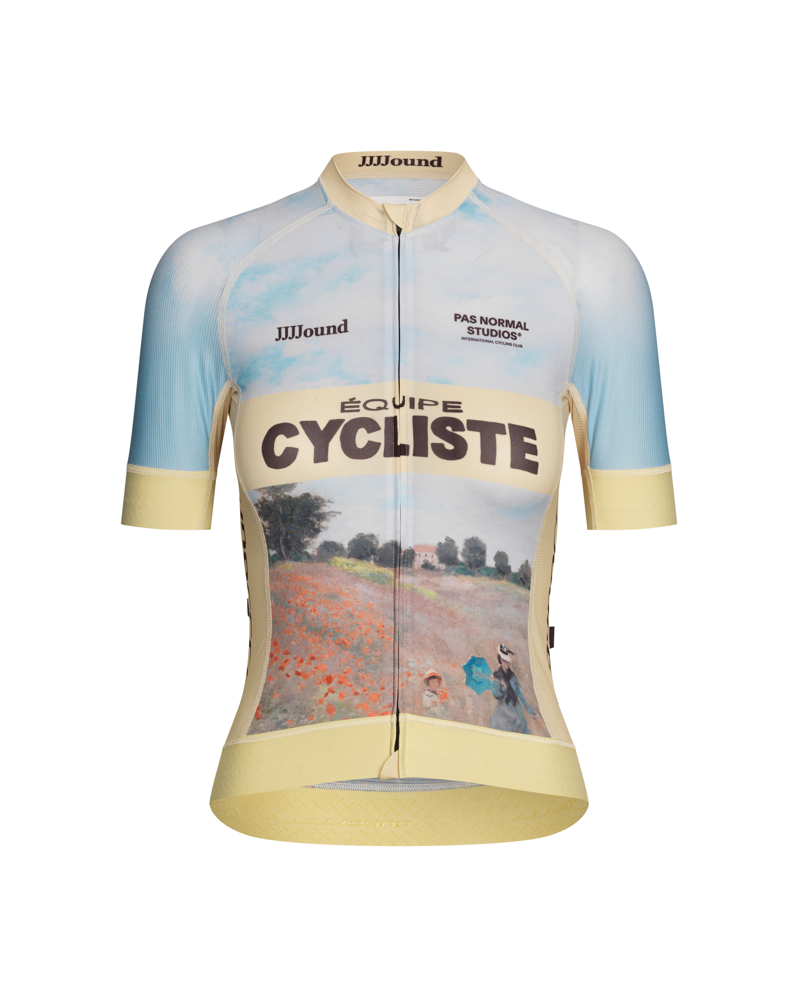 ImpressionismAt the centre of the collaboration is the jersey, featuring a sublimination print of Claude Monet’s impressionist landscape. The artwork—lush and tied to nature—is a romantic contrast to the refined materials and techniques found in modern cycling kit and equipment.