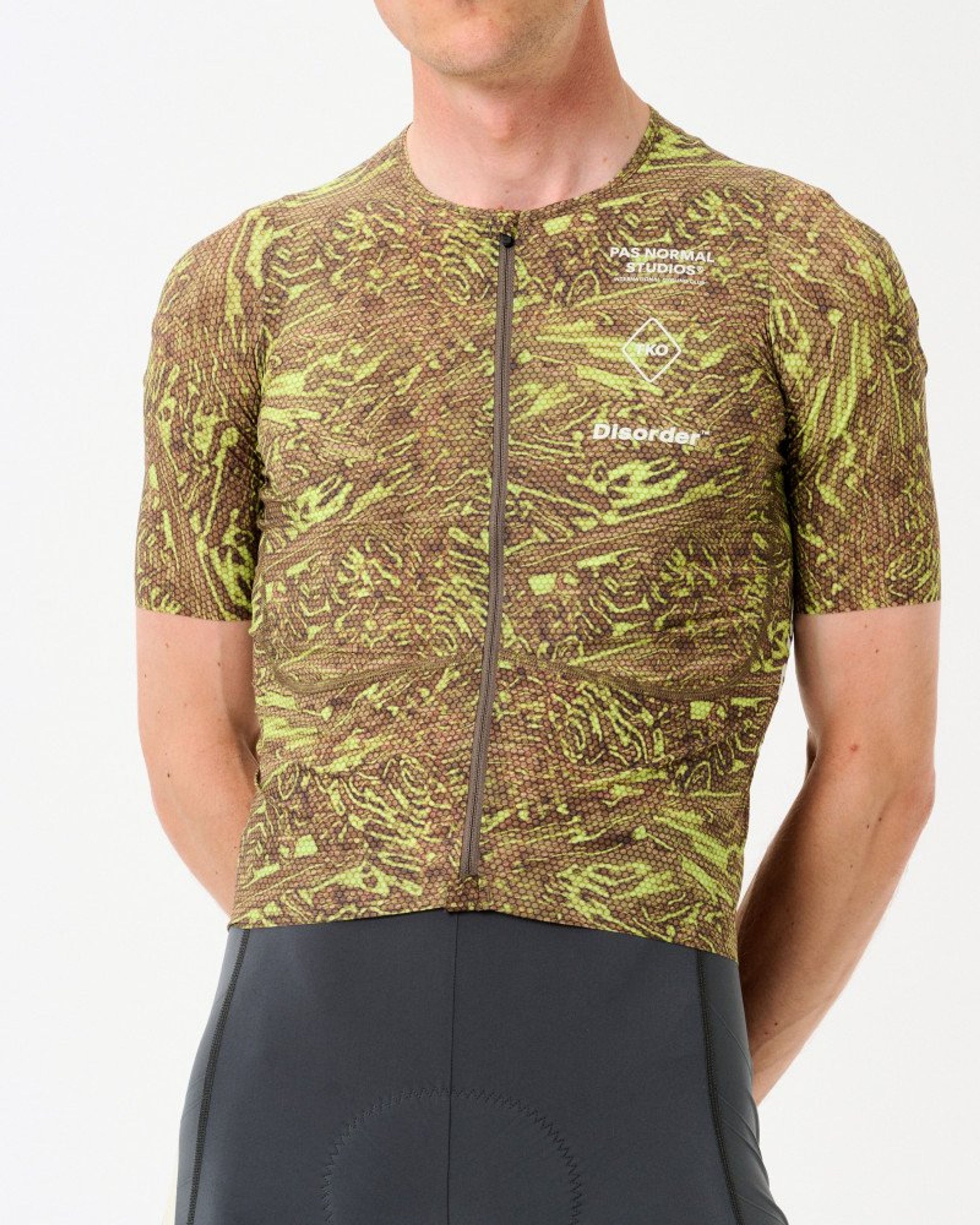 The T.K.O. Jersey is based on our Mechanism Pro Jersey. It merges unique structurally mapped fabrics with speed-optimised construction in a jersey made for speed. Every detail in the jersey has been meticulously calibrated for pro-level performance and a second-skin feel. All details matter. From the combination of unique 4D stretch-woven fabrics developed for Pas Normal Studios to the choice of finish and construction. The jersey is part of our limited T.K.O. Disorder™ collection for Spring/Summer 2023.