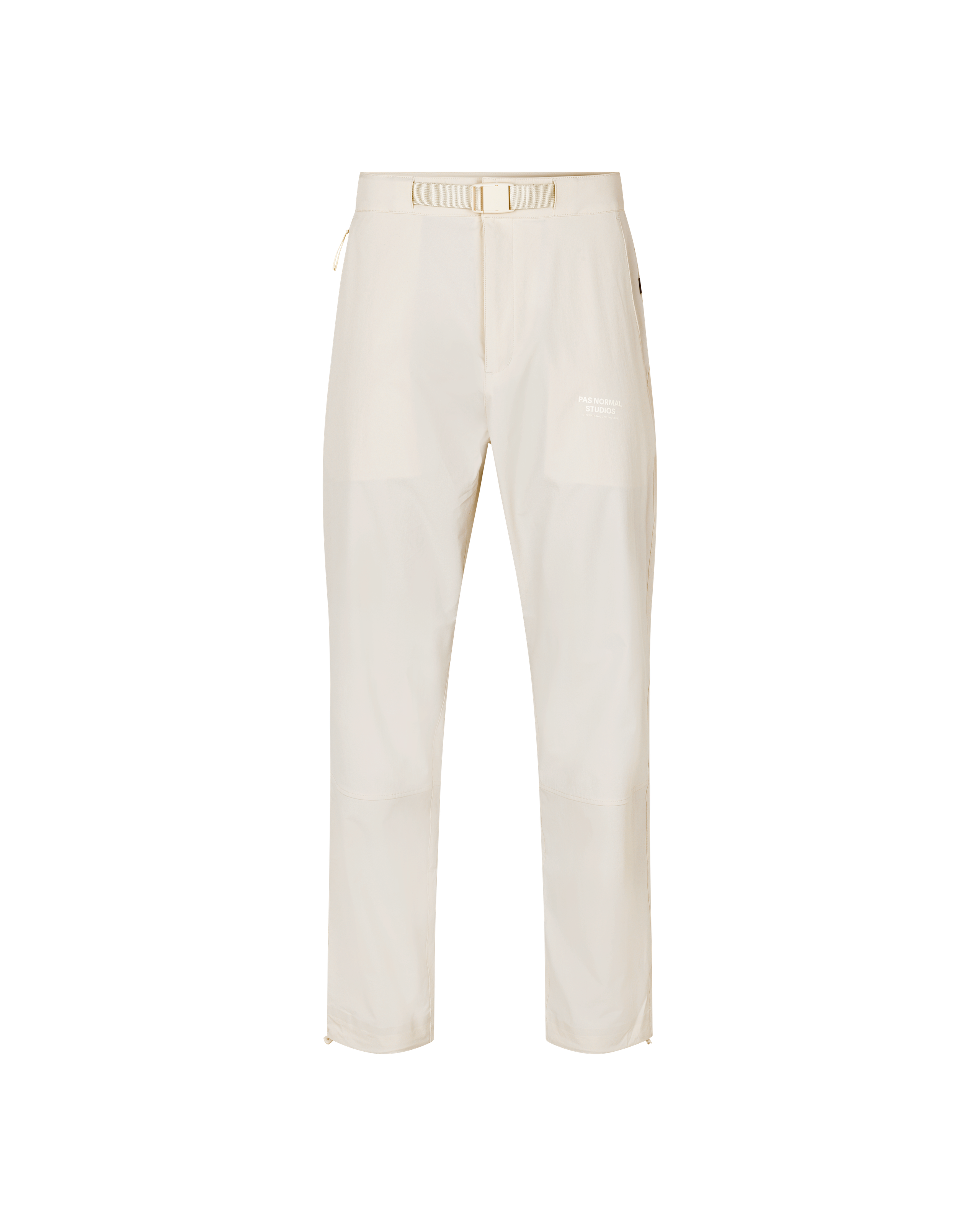 The Off-Race Pants are a smart, functional piece for year-round use. These pants take on a casual fit while retaining highly stretchable properties to move with you through your daily life. Taking you easily from the streets to the trails. Completed with a canvas waist section, dual snap-fasteners with an additional locking buckle. The Off-Race Pants feature pocket zippers and zip pullers throughout and are treated with a DWR finish to keep you protected from the elements. The Pas Normal Studios Off-Race Pants come in two new seasonal colourways: Beige and Green.