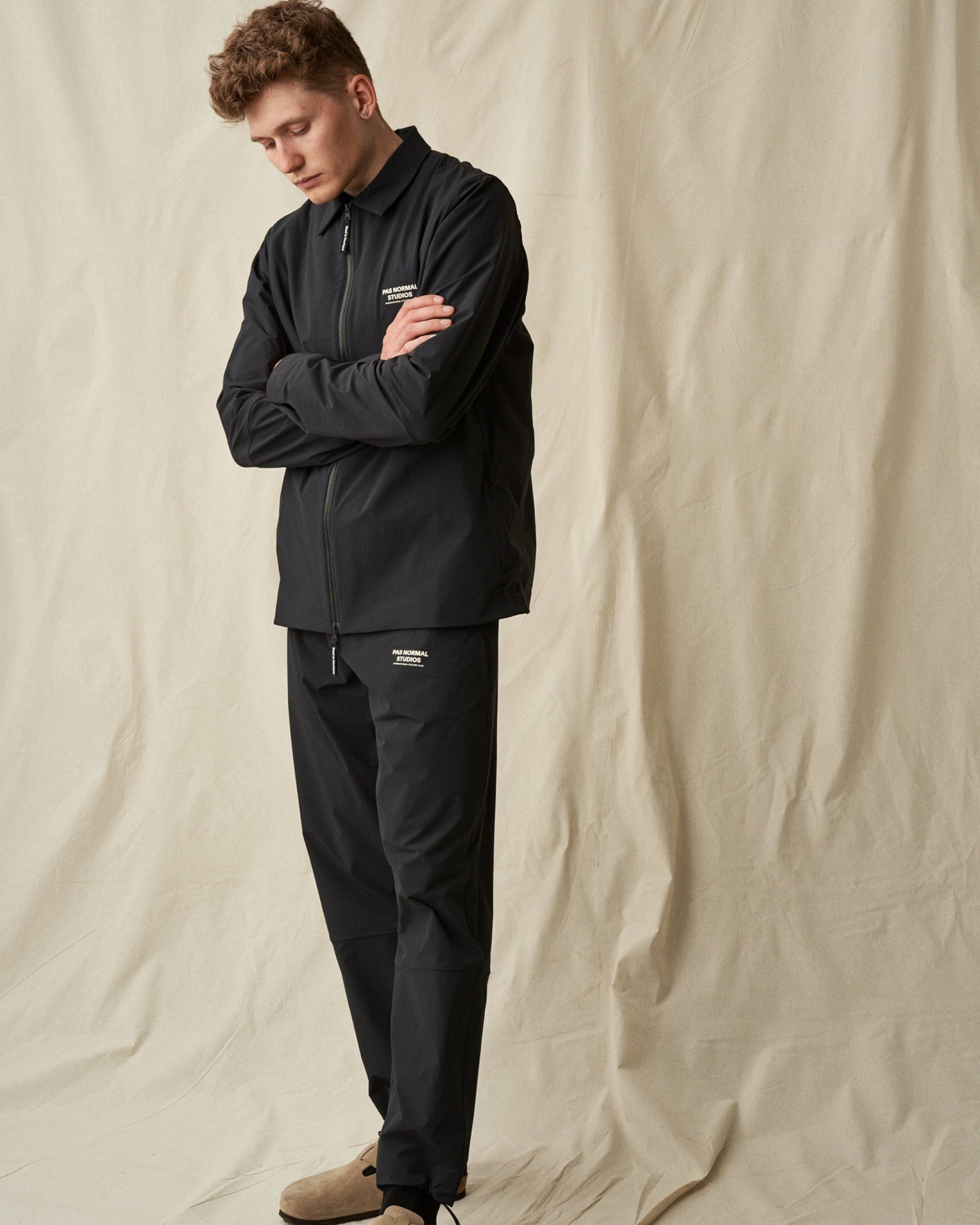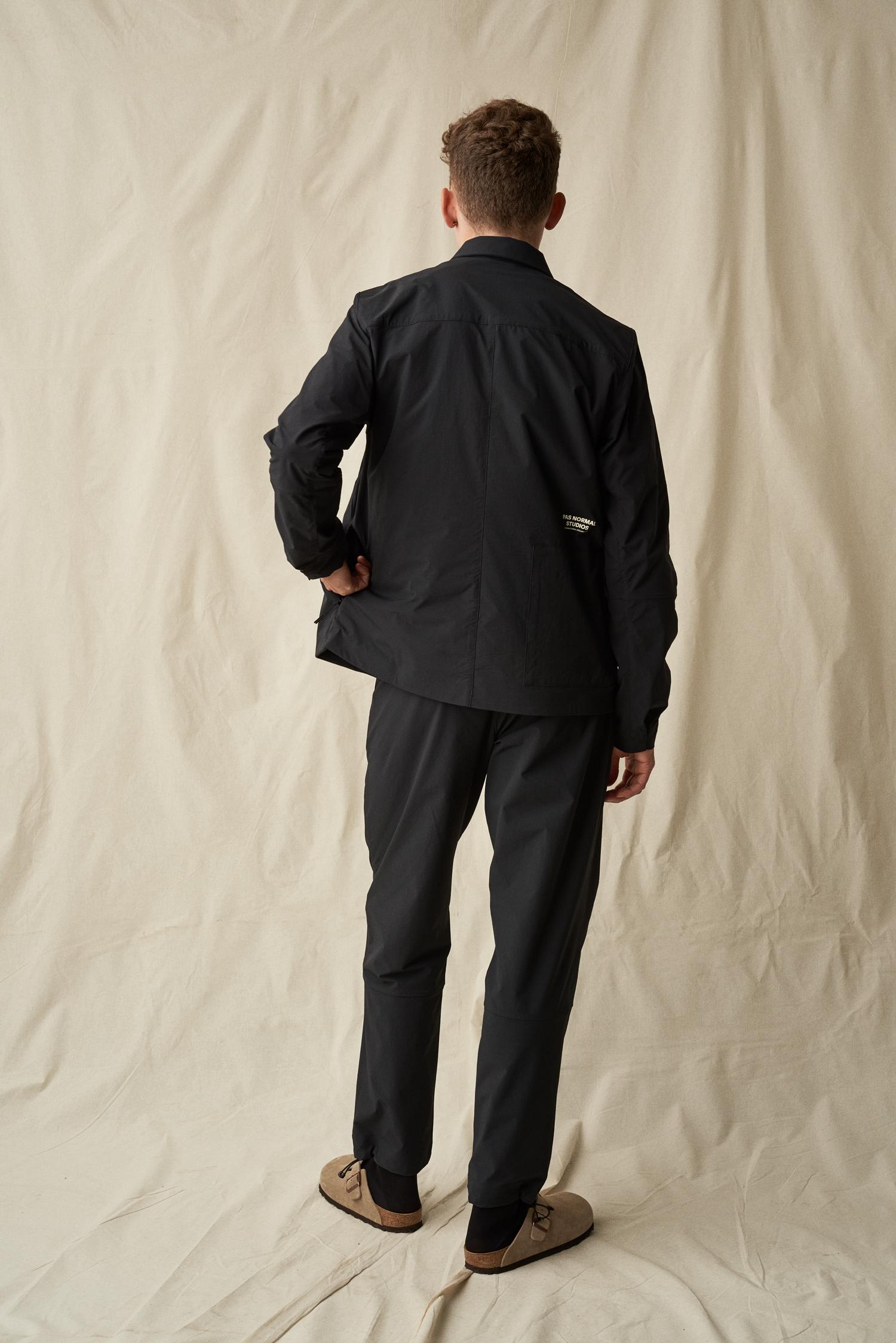 Its DWR-finished nylon construction has been injected with highly elastic spandex fibres, delivering an exceptional feeling of freedom and mobility whilst keeping you protected from the elements. Outfitted with two side pockets and boasting an additional back pocket reminiscent of our cycling jerseys, this piece takes on a completely utilitarian aesthetic, yet remains exceptionally stylish and comfortable. Finished with double snap-fastening cuffs, a two-way front zipper with branded Road to Nowhere zip pullers, and completely redesigned zip pullers on all pockets, the Off-Race Work Jacket makes for a versatile addition to your outerwear wardrobe.