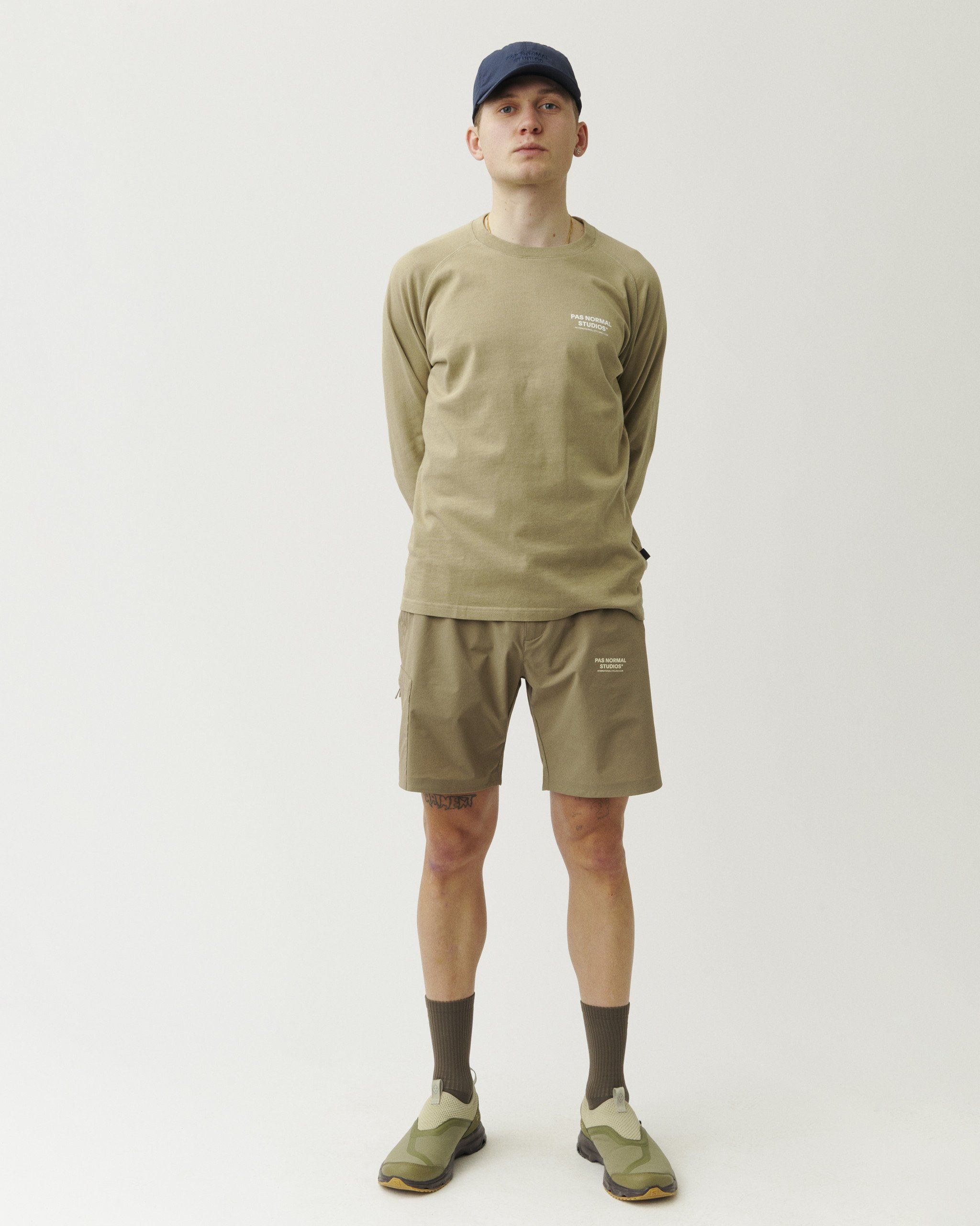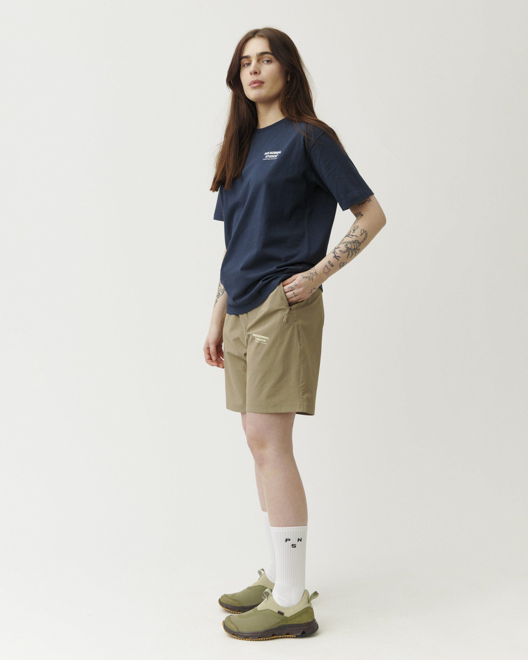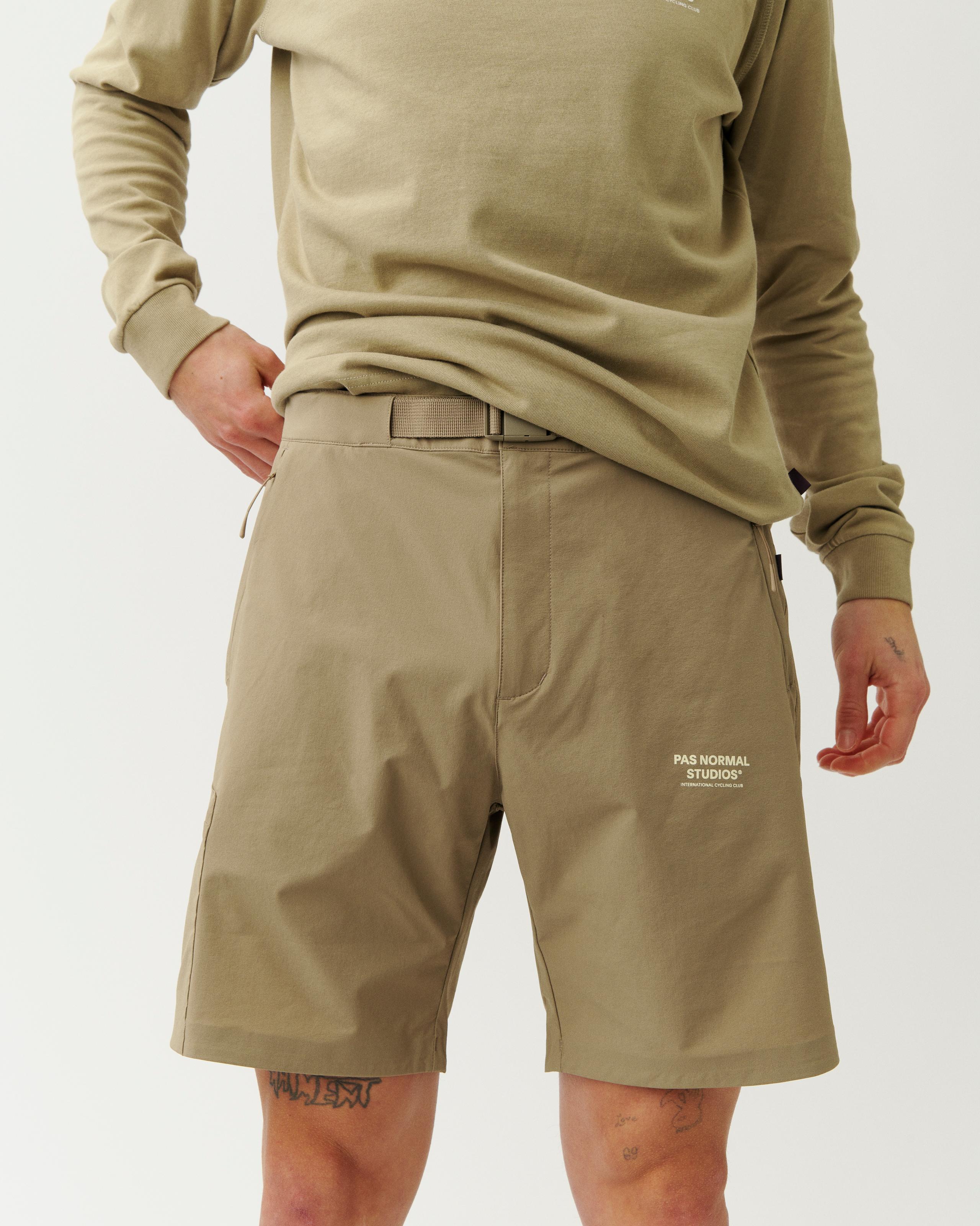 Taken from the Off-Race Pants and reimagined for warmer days, the Off-Race Shorts boast a soft and durable construction. Secured with a canvas waist section and dual snap-fasteners. These shorts take on a casual fit while retaining highly stretchable properties to move with you through your daily life. Taking you easily from the streets to the trails and delivering exceptional breathability and comfort. The shorts have also been DWR-treated to keep you protected from the elements. Equipped with two lapped zipper pockets and a side cargo zipper pocket, there is plenty of space to safely store your essentials. The shorts come in two new seasonal colorways: Beige and Green.